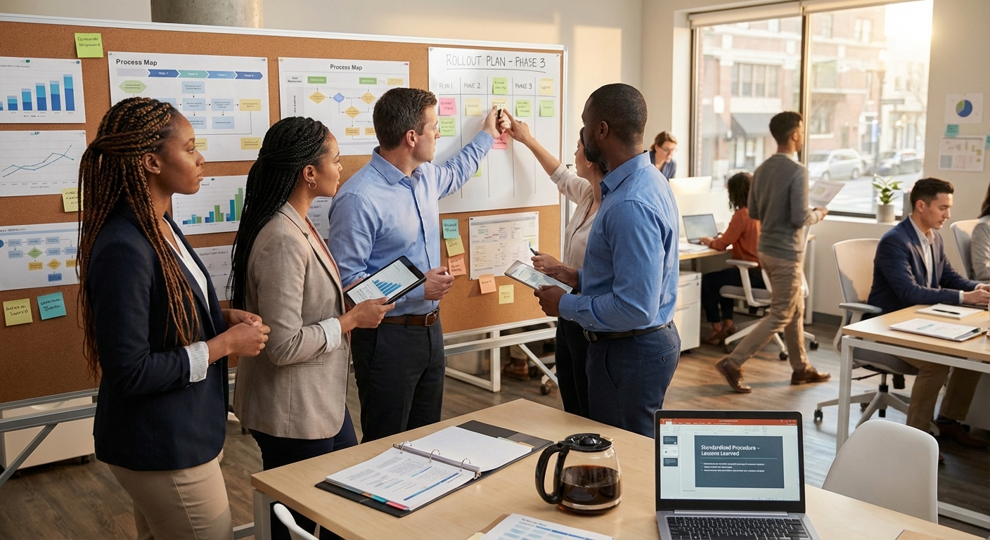 PDCAThe act and adjust phase of PDCA where successful countermeasures are implemented broadly and lessons learned are captured for future improvement cycles.
