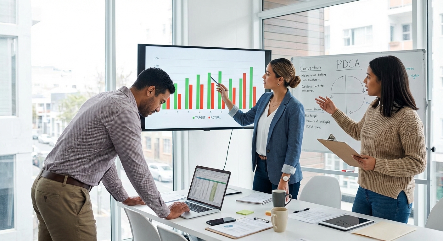 PDCAThe evaluation phase of PDCA where results are measured against targets and the effectiveness of countermeasures is confirmed through data and observation.