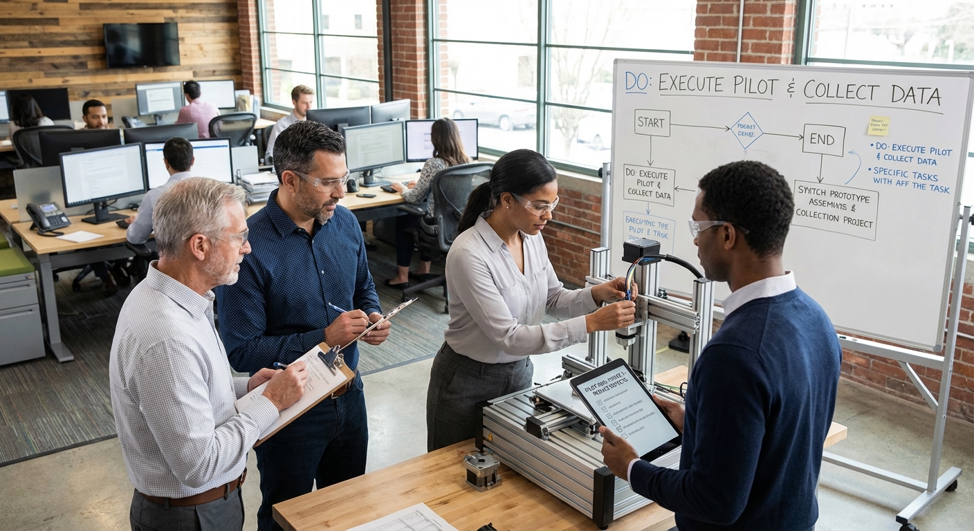 PDCAThe implementation phase of PDCA where countermeasures and action plans are executed on a small scale or as pilots to test effectiveness.