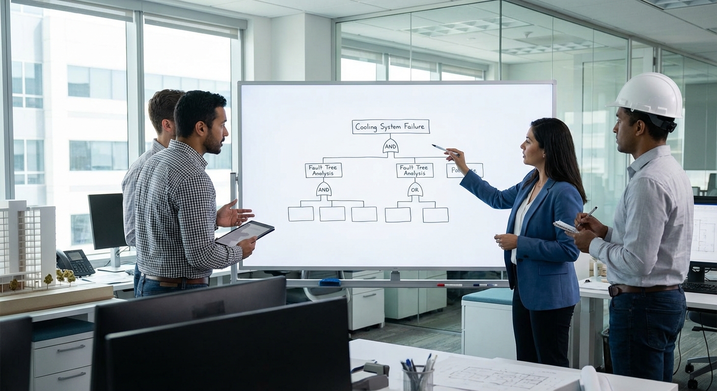 Root CauseTop-down deductive method for analyzing potential causes of system failures using Boolean logic gates (AND, OR). Starts with an undesired top event (the problem) and works backward through contributing factors until root causes are identified. Visualizes all possible paths to failure as a tree diagram. Different from bottom-up approaches like Fishbone which brainstorm possible causes. FTA is more rigorous and quantitative, often used in aerospace, nuclear, and safety-critical industries. Can calculate probability of top event when failure rates of components are known. Complements FMEA by analyzing specific failure scenarios in depth.