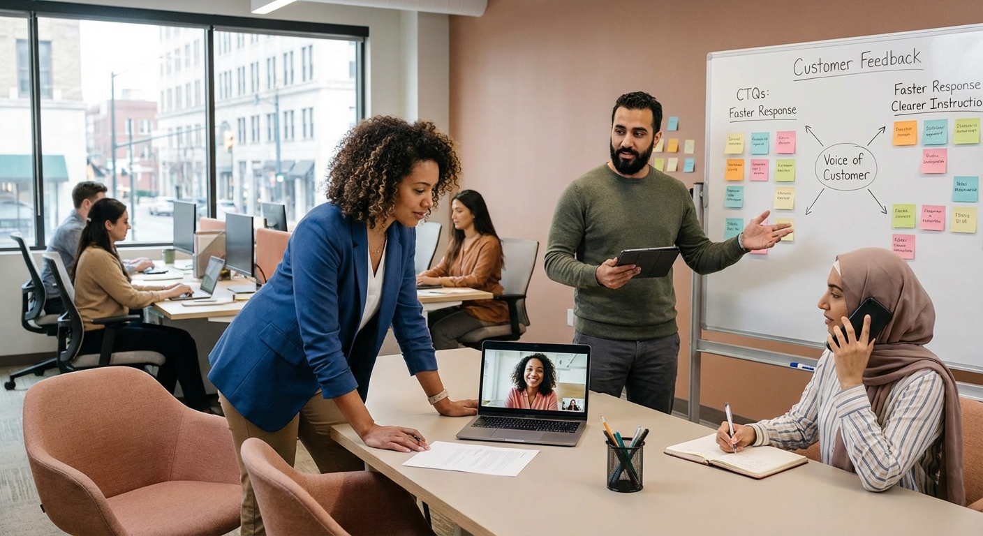 Six SigmaThe process of capturing customer requirements, expectations, and feedback to understand what truly matters to them. Methods include surveys, interviews, complaint analysis, and direct observation. VOC translates into Critical to Quality (CTQ) characteristics that guide problem-solving efforts. Starting point for both Six Sigma DMAIC and A3 Background sections. Without clear VOC, teams risk solving the wrong problem or optimizing metrics that don't matter to customers.